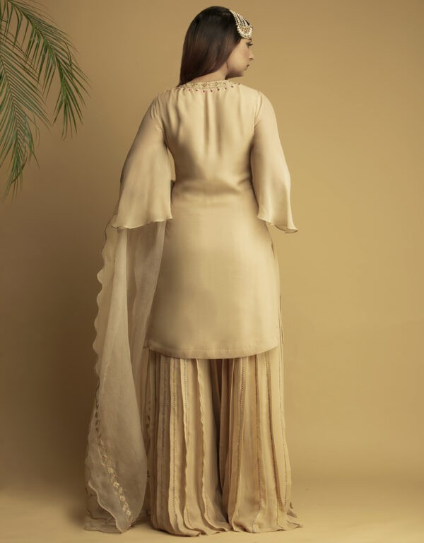 Beige Pakistani Embellished Sharara Suit