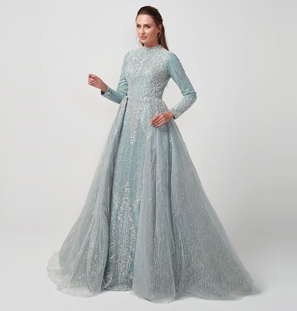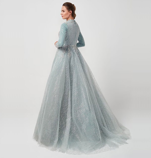 Embrace breathtaking elegance with the Exclusive Blue Embroidered Tail Wedding Dress. This gown transcends tradition, awash in a captivating shade of blue that whispers of romance and individuality. Imagine exquisite embroidery decorating the bodice, adding a touch of timeless charm. The silhouette flows effortlessly, leading to a dramatic tail that cascades behind you like a royal train. This exclusive dress is a masterpiece for the bride who dares to be different, leaving a lasting impression on your most magical day.
