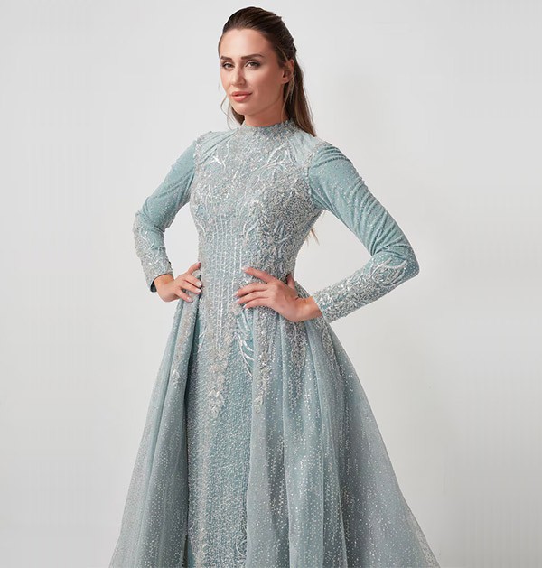 A Fairytale in Blue: The Exclusive Embroidered Tail Wedding Dress