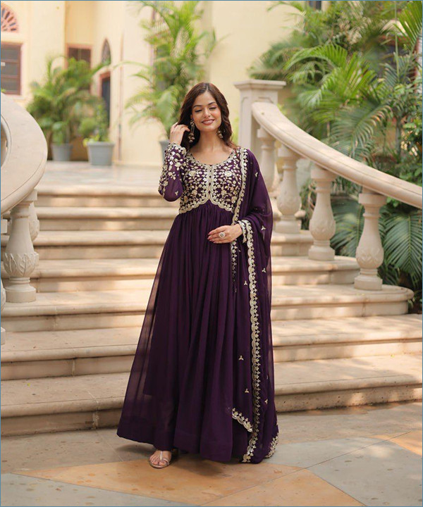 Be the first to review “Faux Blooming Embroidered Work Gown Blue Colour”