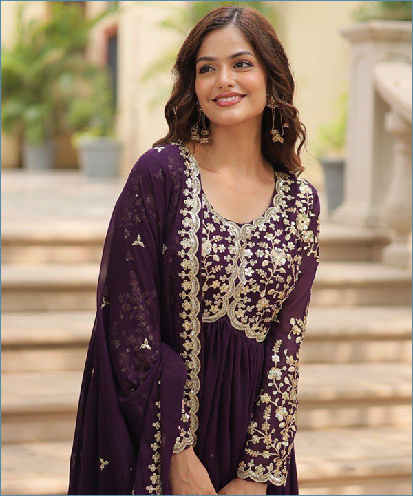 • Fabric: Faux Blooming with Sequins, Multi & Zari Embroidered Work