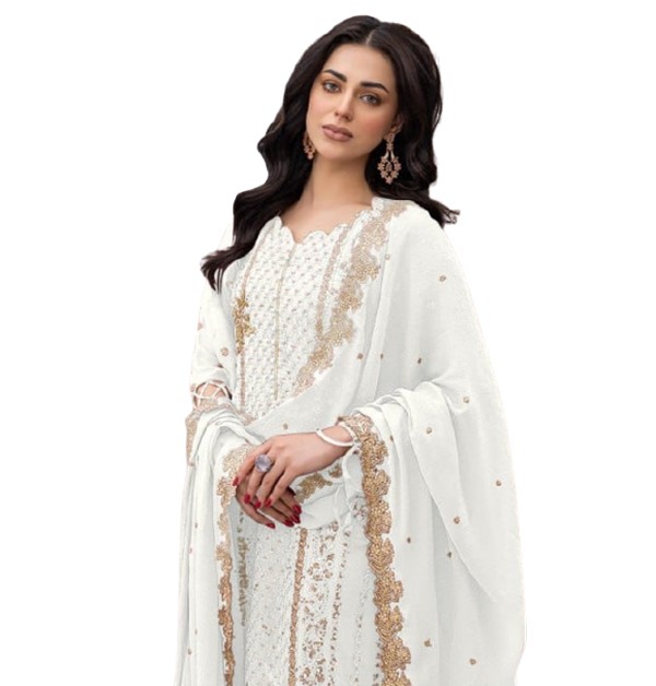 Faux Georgette With Embroidery Sequence Work Pakistani Suit White Colour