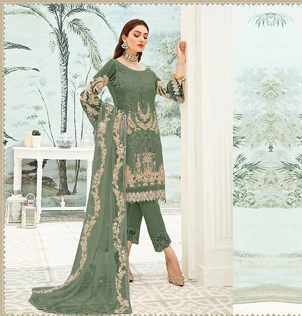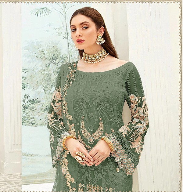 Georgette With Heavy Embroidery Work Pakistani Suit in Green Color
