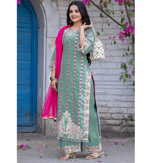 Be the first to review “Green Navy Blue Women Suit Sets Palazzo Kurtas Set” Cancel reply
