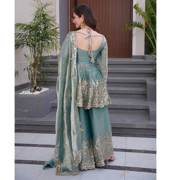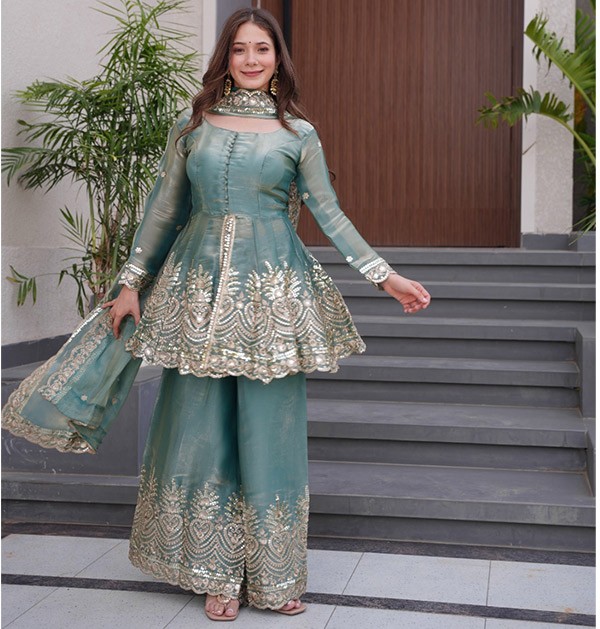 Heavy Two-Tone Fendy Satin Silk Gown with Sharara & Dupatta