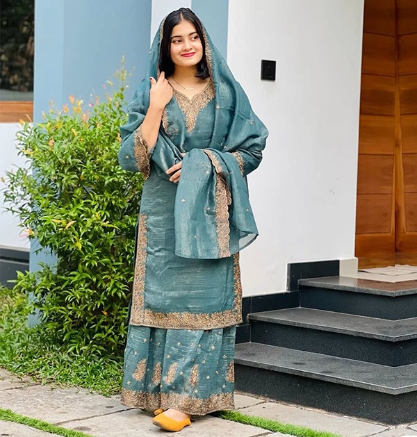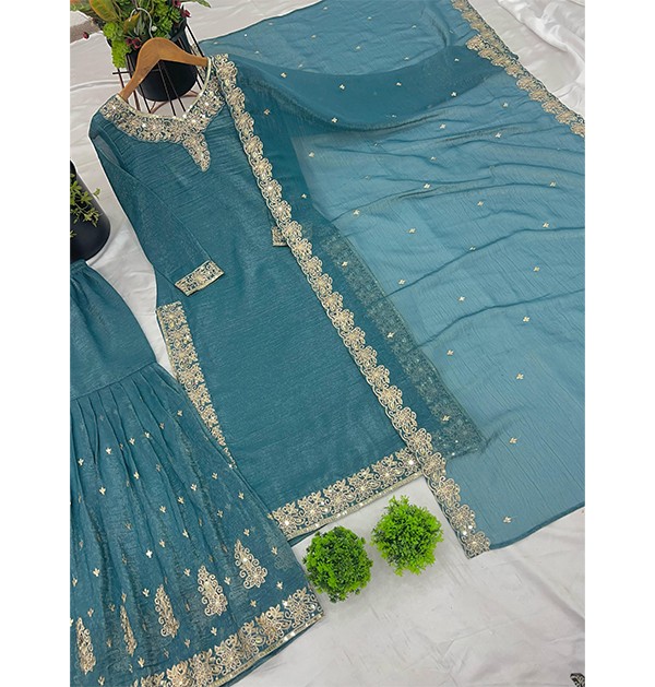 Islamic Fashion Party Wear Ready-Made Suit Dusty Teal Color