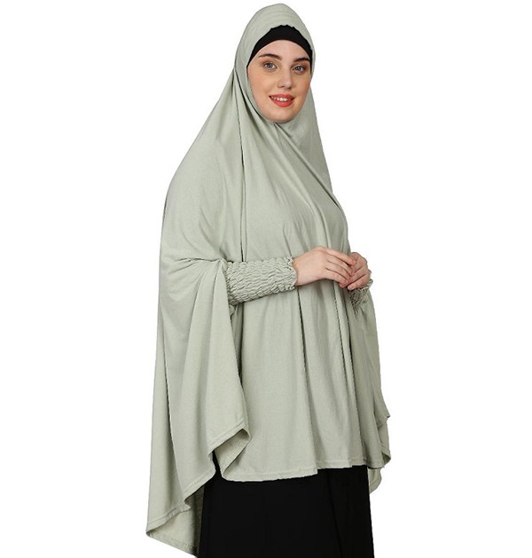 Stretchable Jersey Smoking at Sleeve Sage Green Prayer Khimar Hijab