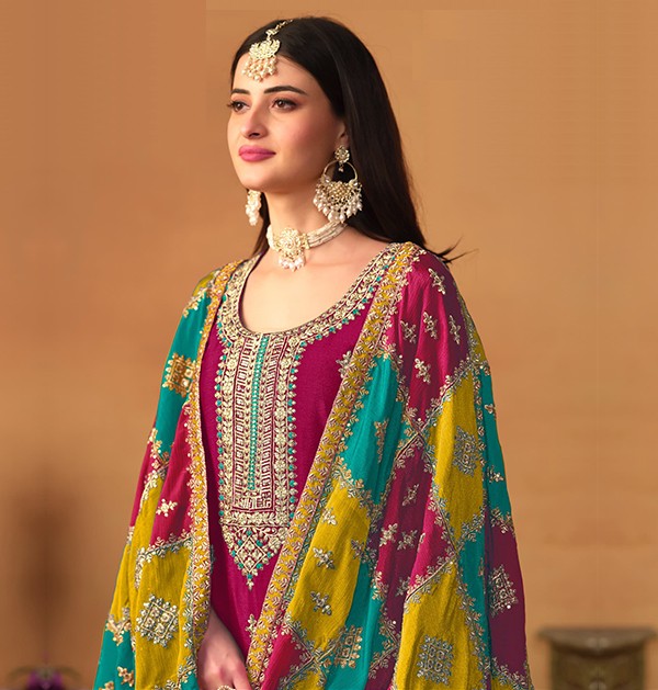 This traditional women’s attire features luxurious Chinon Silk in a vibrant Rani Color, adorned with intricate embroidery work that exudes elegance. Perfect for festive occasions, the soft and lightweight fabric drapes beautifully, offering both comfort and style. Celebrate tradition with this stunning blend of classic craftsmanship and modern design.